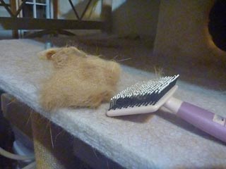 昨日紹介したブラシで集め続けたジャイ産毛を取り外してみました。ジャイ産毛布が作れそうです。
