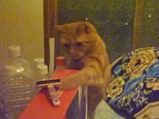 かくして平和は訪れた。私の虫取りも熟練したもんです。ニャ!ニャ!ジャイ選手も興奮さめやらない様です。
