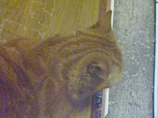 8月9日のツチノコの様なジャイ選手。爪とぎは顔を乗せる場ではないんですよ。とぎ尽くされてるだけか…