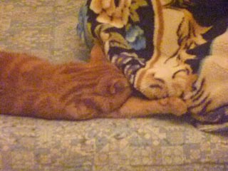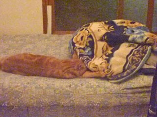昨日の写真から16分後のジャイ選手ジャイ!こんなフォームが今まであったでしょうか?確実に猛暑です! そんな暑さに負けず風にも負けない、そのような猫の第177号頭付け寝です。