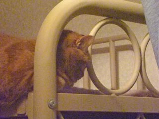 9月7日のジャイ選手とシャツ。何故シャツを飾っているのかが思い出せません。 もちろん洗濯して干しますが、基本的にここには干さないんですね。第178号頭付け寝です。