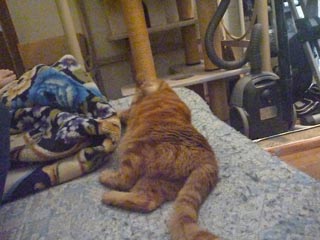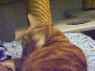 昨日の朝に撮れたてだったジャイ選手です。尻方から撮っています。照れるにゃと言う事でね。