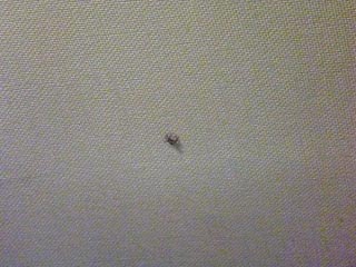 左、4月29日、天井に張り付くクモ選手。この後、不本意ながら掃除機に封じ込めさせて頂きました。