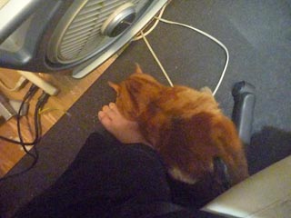 昨日、8日ぶりというハイペースで風呂に入った直後の私の足に陶酔するジャイ選手。