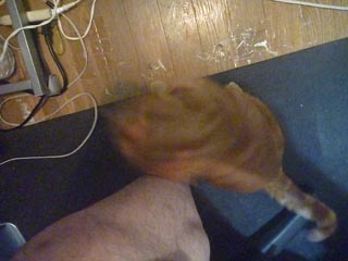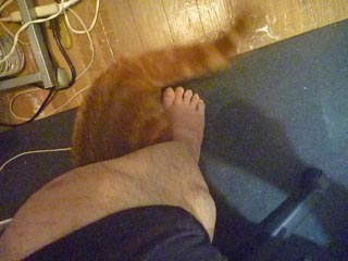 十日に一度の恒例、洗った足すりすりジャイ選手です。 どうでもいいですが、つま先立ちと言うか、かかとを引いて足を付けているのでふくらはぎが妙に隆起しています。