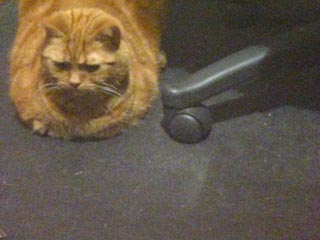 先程のジャイ選手。椅子の後ろが結構、気に入ってるんですよね…。 ちなみに、この更新作業に入る時にデジカメ取ろうと思って、 若干椅子を引いたらジャイ選手が飛び出しました。。。後ろに居ました…。 気をつけないとなー