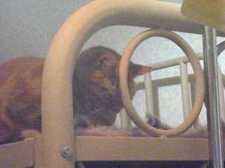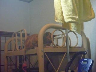 幸せの黄色いハンカチに向かって頭付け寝を決めるジャイ選手です。