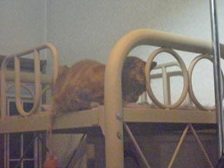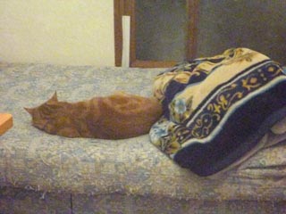 昨日の夜明け前のジャイ選手の頭付け寝と、本日、夜明け時のジャイ選手の尻付け寝です。