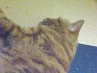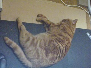 昨日の夜明け前のジャイ選手。椅子のキャスターがすぐ後ろにあるのに、この警戒心の無さ。