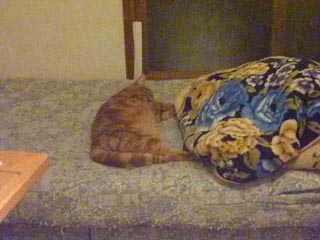 本日、日付変わって間もなくのジャイ選手。何と言うか、時に神がかったシャッターチャンスを作ってくれます。 これは何でしょうか、毛布の出っ張った部分の長さを測ってるんでしょうか。