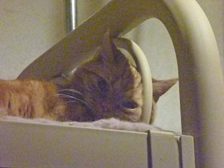 昨日夜のジャイ選手。輪を斜めに被るオシャレな感じがしますね。