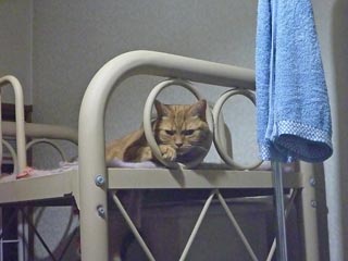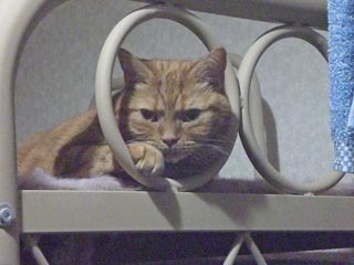 険しい目で見ています。 険しい目で私のやや上を見ています。