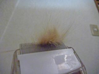 一振りで毛がゴッソリ取れるジャイ選手です。毎日頭からケツに向けてナデナデしてるとですね、 抜け毛がケツから太腿の後ろ側に集まるんですかね? そのポイントに明らかに浮いた白い毛のまとまりが現れるんですよ。で、実際に一振りでゴッソリその部分が取れる。 と言うか、ゴッソリ取る前の状態を撮っておくべきでしたね…。迂闊な失態でした。