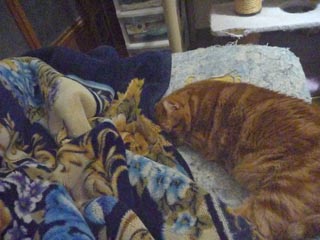 八日ぶりのジャイ選手、ですが例によってこれは11月6日のジャイ選手です。 私の寝相が良い事がこの写真からお分かり頂けるかと思います。 また、右上のソファーの表面が破れているのもお分かり頂けるかもしれません。